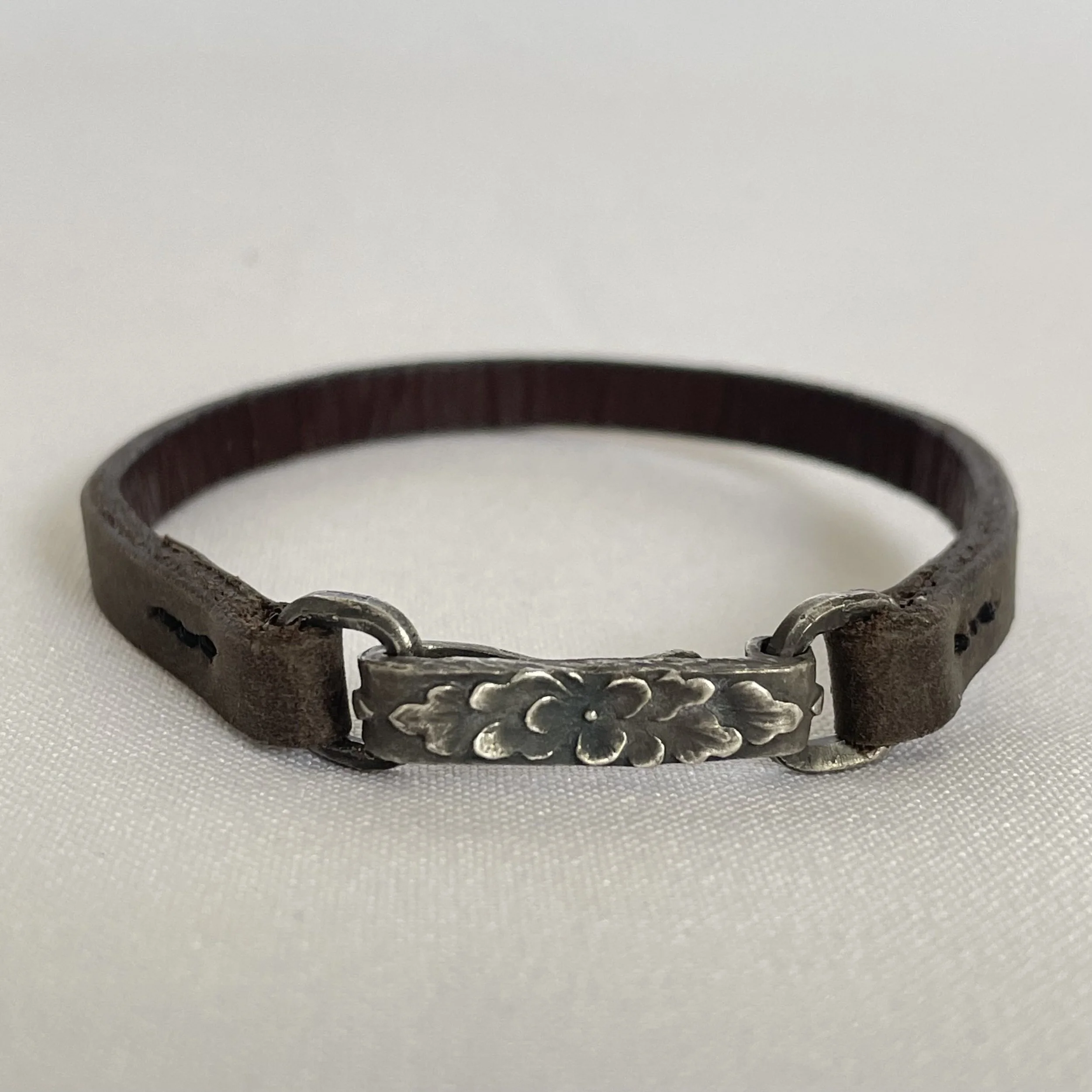 This series features a unique cowhide leather-waxed for a refined finish, yet incredibly soft with a suede-like touch. It's a beautiful leather we fell in love with after visiting numerous leather shops in New York. Paired with blackened sterling silver, it creates a classic vintage look.